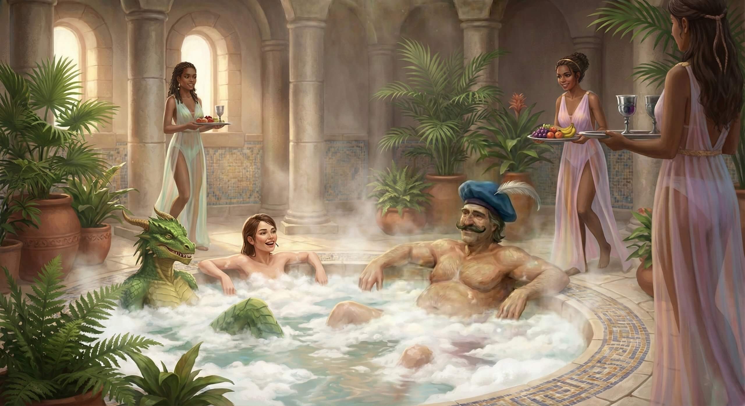 🏙️ ВСТРЕЧА В «ГРОМОВОЙ ЯЩЕРИЦЕ» Группа в сборе: Тень (дампир-монах), Диего (полурослик-плут), Фаэлин (драконорождённая друид) и новый знакомый Ульф Камбеёб (дварф-паладин Сьюни). Они отдыхают в таверне «Громовая ящерица» в Порт-Ньянзару, когда к ним подходит взволнованная Лита — помощница главной жрицы храма Сьюни. Лита показывает записку в плотном конверте с резким запахом горелого...
