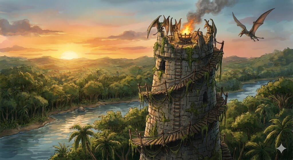Перед смертью вожак или кто-то из его сородичей издал не крик, а долгий, пронзительный зов, разносящийся на мили. И джунгли ответили. Сначала с дальних вершин, потом с ближних утёсов. Крики, писки, шум сотен крыльев. Соседние племена птеролюдов были подняты по тревоге. Ночные джунгли, и без того враждебные, ожили тысячами враждебных глаз, замерцав в отдалении. Стало ясно: оставаться на башне — значит быть окружёнными и разорванными на куски.